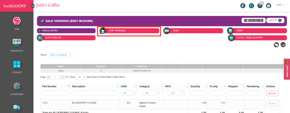 To pick products from a sales order from the SwiftCount app, you will need to assign it to a user.