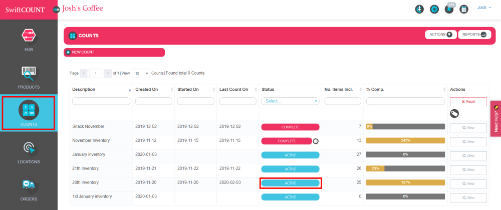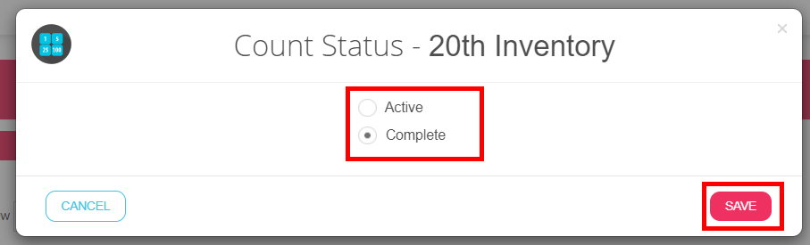 Count status informe you if the count is completed or not. It also will allow you to filter the count list and only show the “active” or “Completed counts. Usually the status is updated by the counter at the end of the count from the app but you can also change it from the browser at any moment.