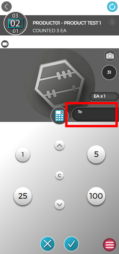 Confirm the quantity by selecting the “checkmark” button at the bottom of the screen. See below.