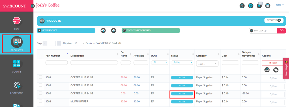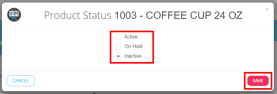 Note: Products with active on-hand quantity cannot be set to inactive. You will have to move out its quantities before changing its status.