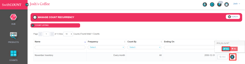 You might want to delete a recurrent count because you don’t need to count these products anymore.