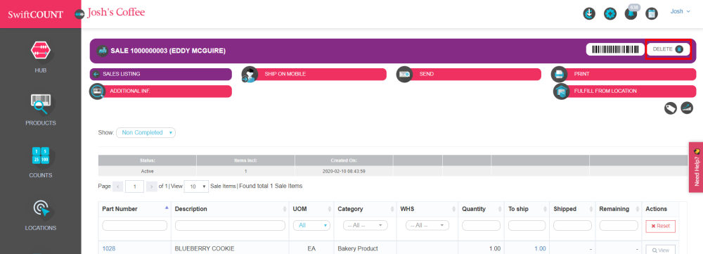 Step 2: Delete the sales order