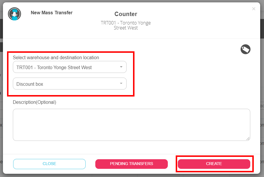 Step 2: Select the location you want to transfer the products to