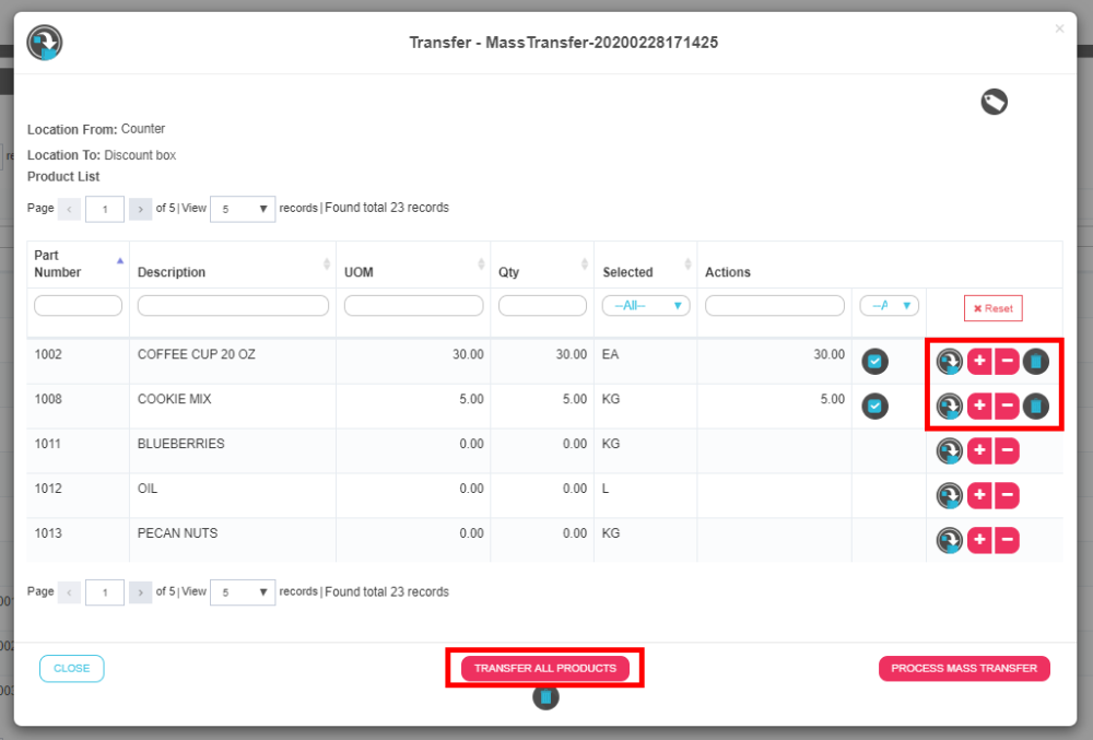 If you want to transfer all the products and quantities, click “Transfer all products”
