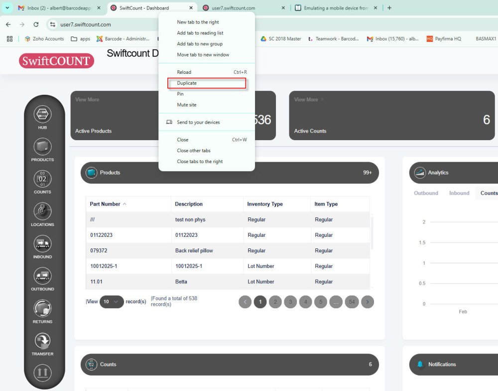 1) Open Swiftcount on a computer screen then on the top window right click and select the option to duplicate the screen