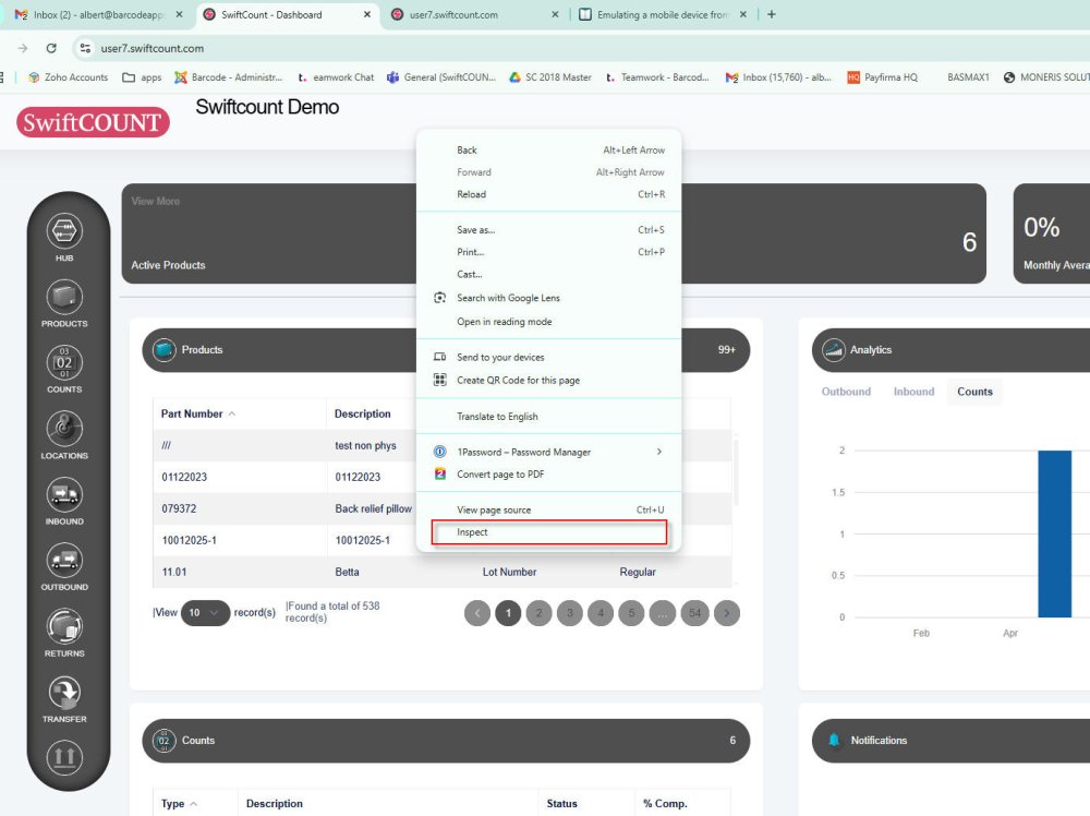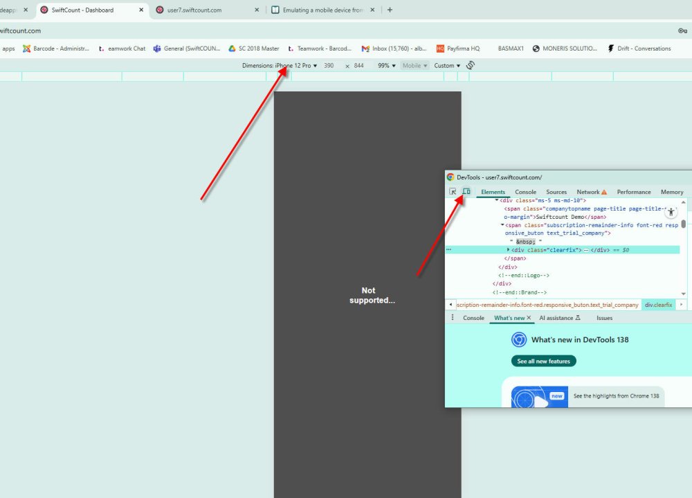3) Once on inspection mode you can select the type of device to emulate (i.e iPhone etc)