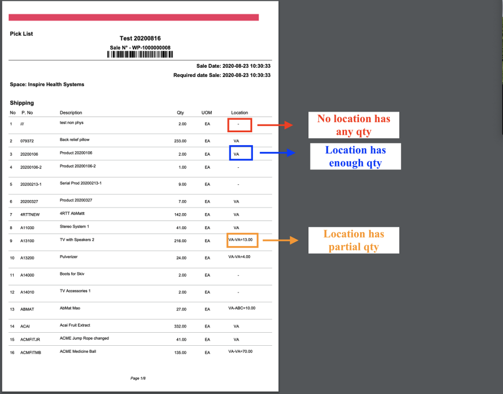 8-1 All: lists all the items in the sale wave pick regardless of the qty picked.