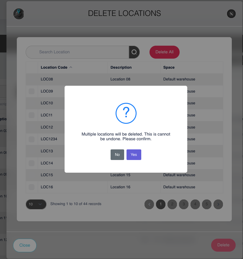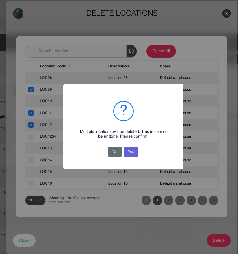 Multiple locations will be deleted. This cannot be undone. Please confirm.