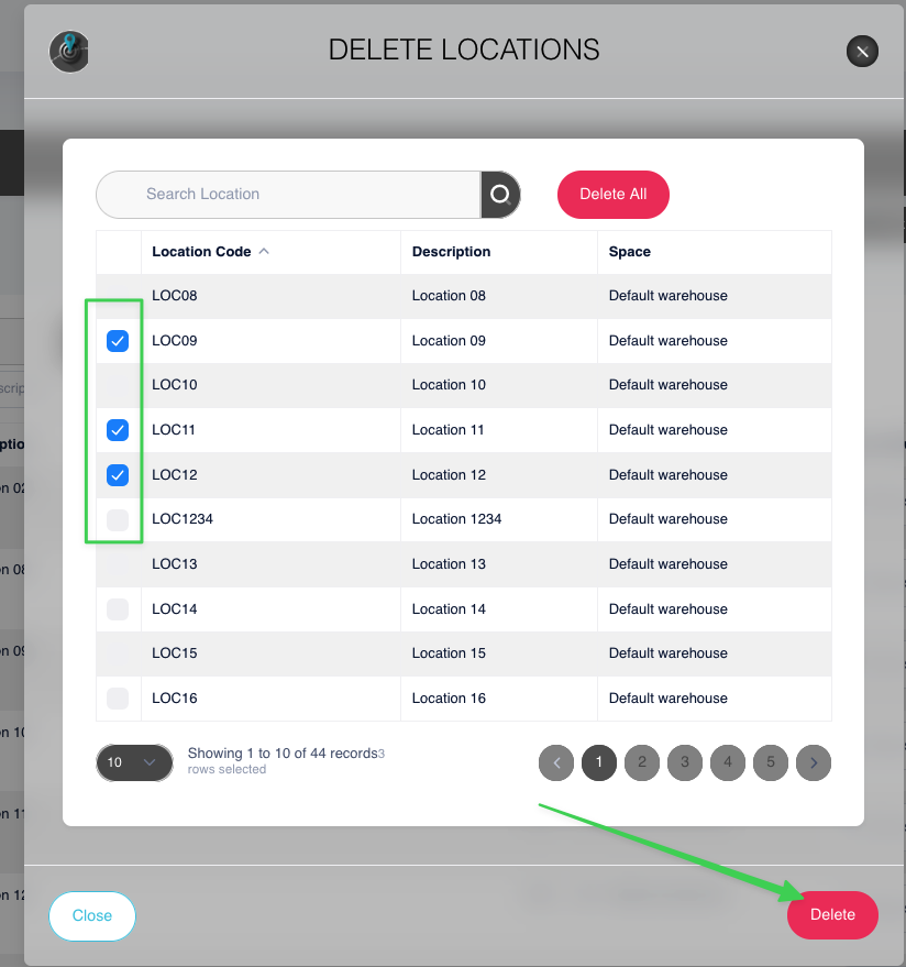 - Select Locations (2): Check the box next to any location you wish to delete. You can select one or multiple locations from the list.
