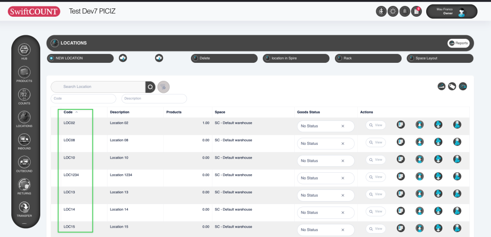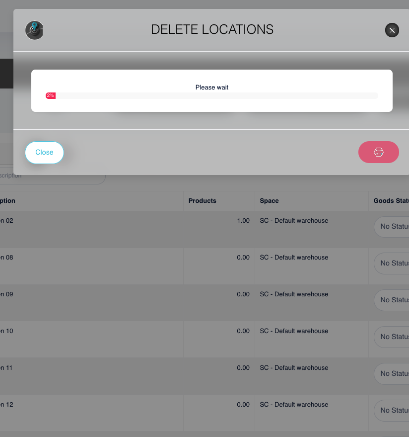 - Only locations with no stock, no products assigned as primary, and no historical movements will appear for deletion.