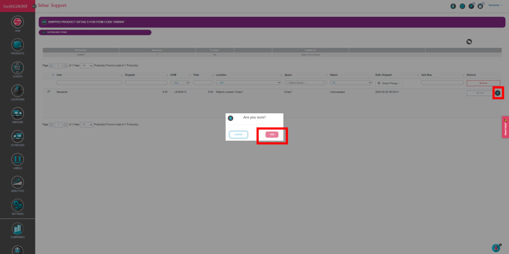 You can also delete de shipped quantity clicking on the “Trash” Icon.