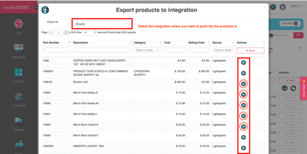 Once you have synced multiple sales channels, you can still have products which are only available in one channel. In order to have all products in every channels, you can export products to the missing integration. (For example, you created products in Lightspeed and want to push them to Shopify).