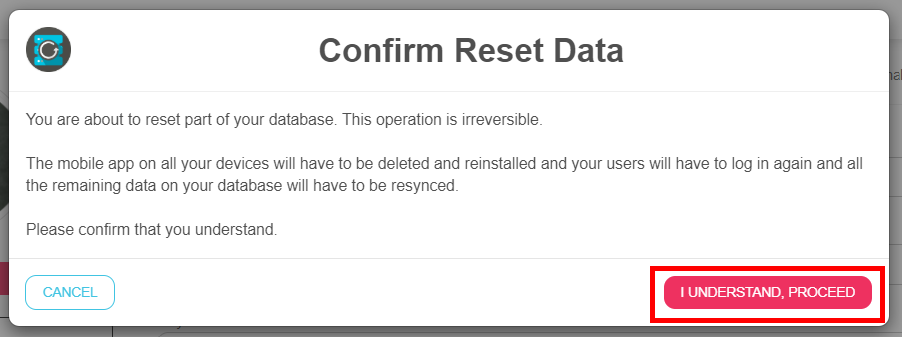 WARNING – This operation is irreversible. Make sure you select ONLY the information you want to be reset. If you are unsure, you can contact support at any time. We will be glad to walk you through this process.