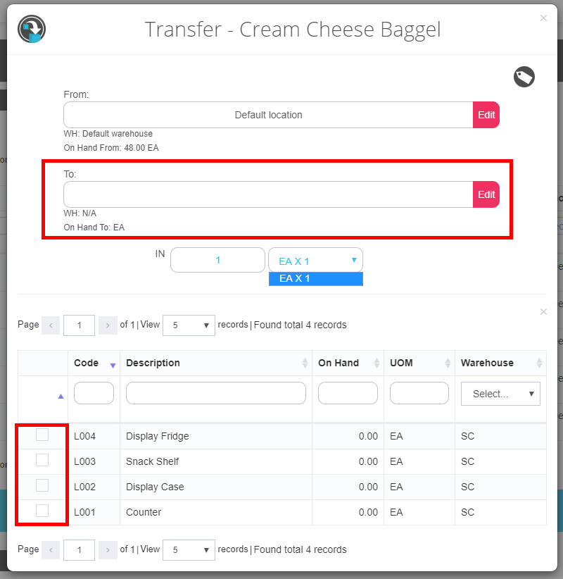 Click “Edit” on the “To” line & select the location you want to transfer to