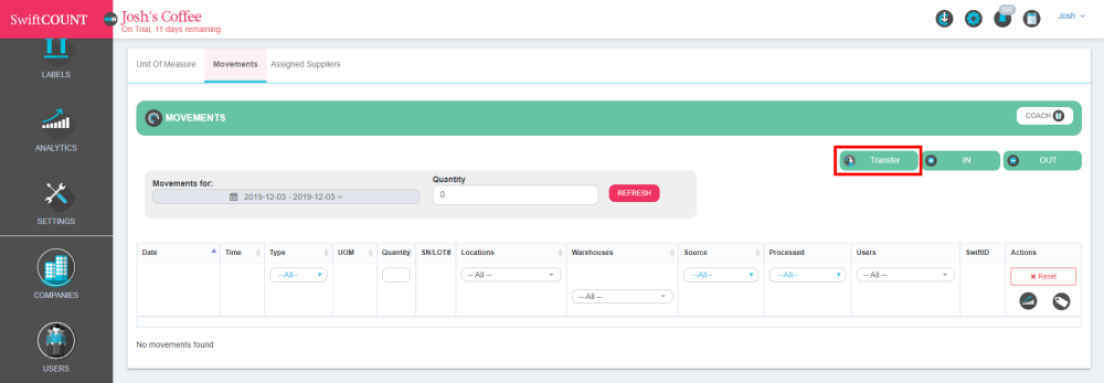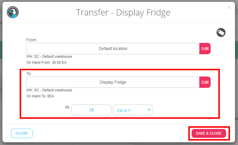Click “Save & Close” to validate the transfer or “Close” to cancel it