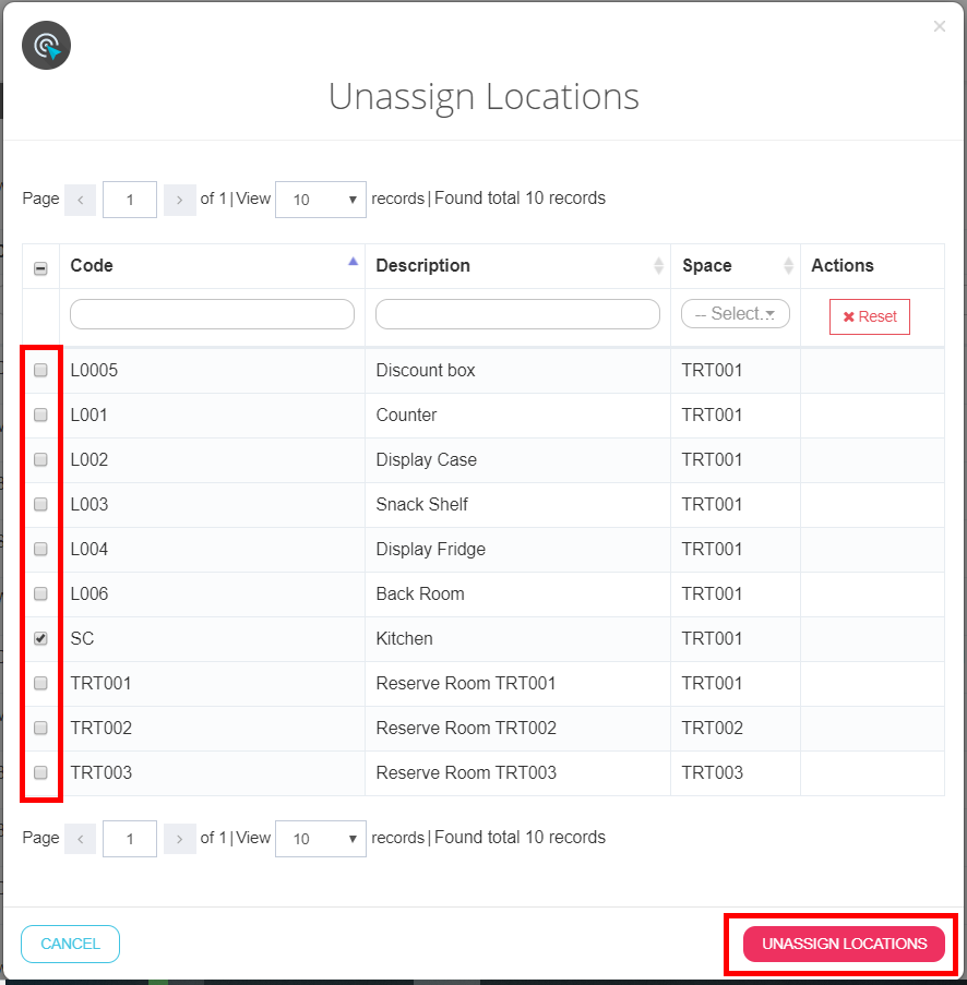 Click “Unassign locations”