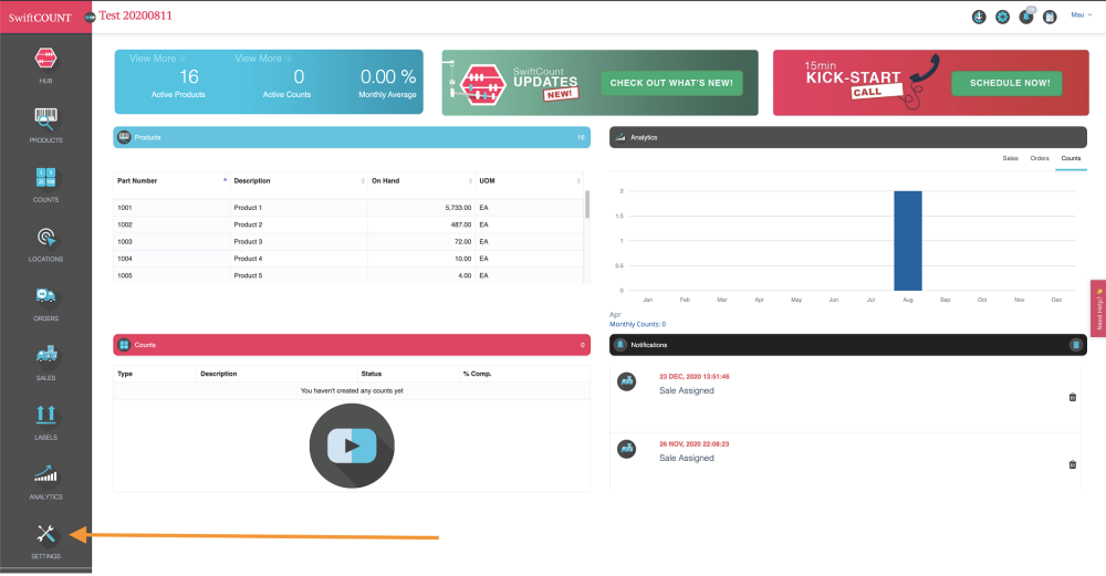 1. From the HUB, click on Settings.