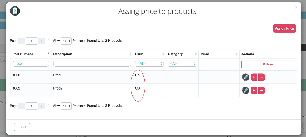 B2- Once you have a subset of products listed, click on Assign Price button: