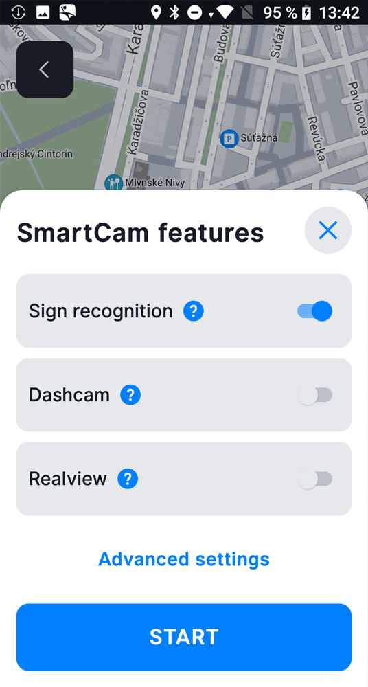 Inside the Sygic app’s Menu → Settings → Smartcam you can set: