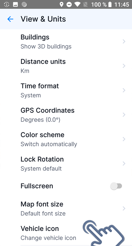 You can also select the Vehicle icon in the application Menu → Settings → View & Units → Vehicle icon.