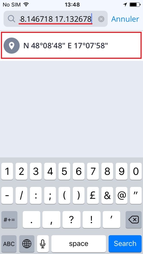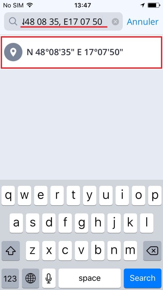 nous le pouvons entrer directement dans la barre de recherche, mais au lieu d’utilisant Degrés, Minutes et Secondes nous utiliserons “espaces”