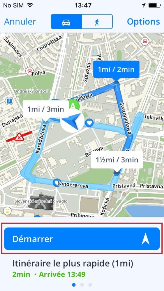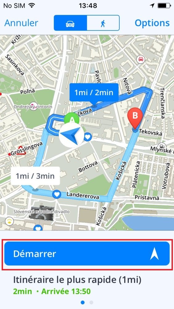 et le moteur de recherche de texte intégral nous fournira avec les résultats pertinents sur la carte. Sélectionnez le résultat désiré de la liste, tappez sur Obtenir les indications,sélectionnez la meilleure route pour vous et appuyez Démarrer.