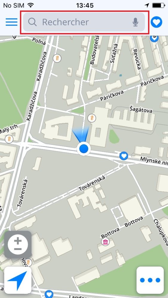 1. La navigation vers une position spécifique en utilisant les coordonnées GPS est possible grâce à la barre de recherche en haut de l’écran de la carte.
