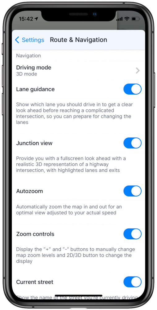 - Rue actuelle – Affiche le nom de la rue dans laquelle vous conduisez actuellement