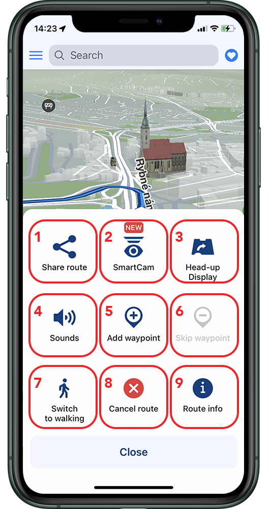 Allows you to quickly change the navigation mode to walking/driving mode depending on what you need at the moment.