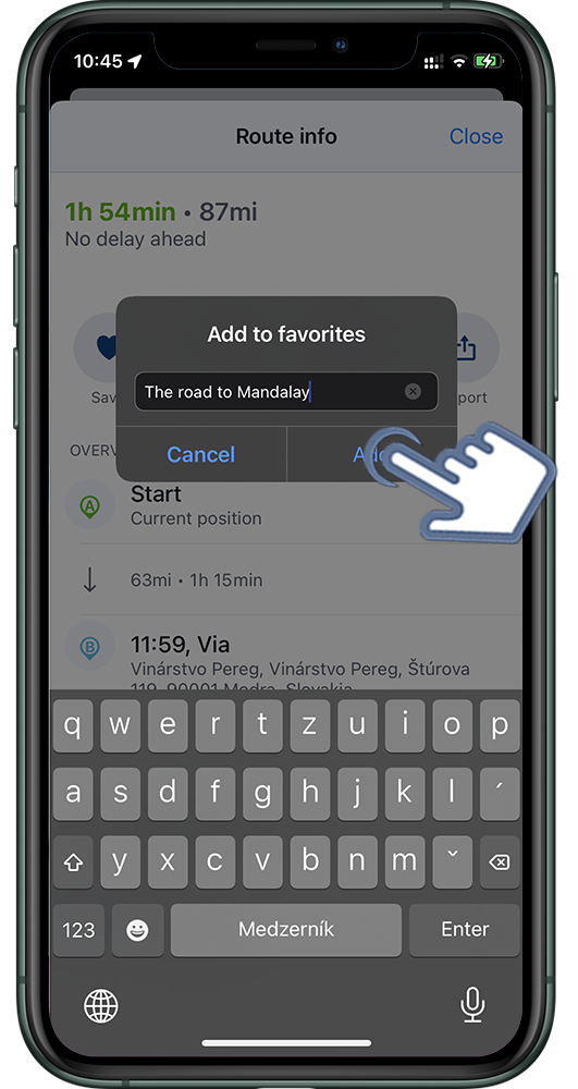 3. In the last step, you can customize the name of the route and then confirm its addition to your Favorites by pressing “Ok”.