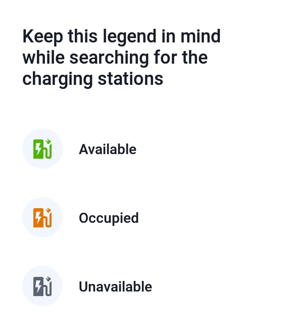 - Naranja : la estación tiene conectores compatibles con su automóvil, pero los cargadores están ocupados actualmente.
