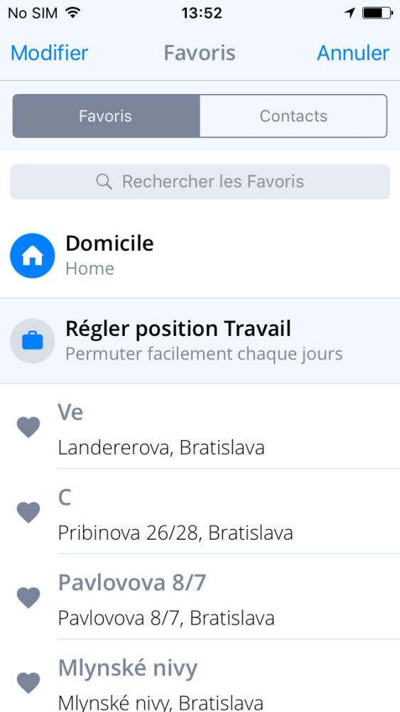 Vous pouvez établir vos propres Favoris adresses. Pour un accès simple vers vos contacts, vous pouvez naviguer vers vos Contacts directement dans l’application.