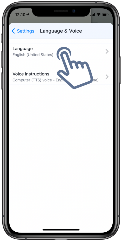Le langage de l’application peut être changé via Menu > Réglages > Langue et voix > Langage