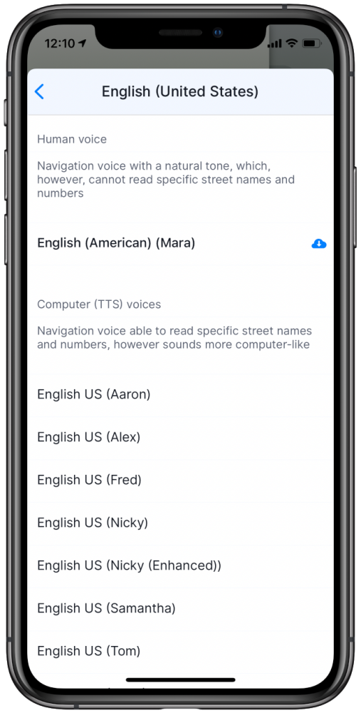 Vous pouvez choisir entre les voix Standard et TTS. La voix Standard offre tous les instructions utiles pour la navigation en qualité audio plus supérieur dans la comparaison avec les voix TTS. D’autre part, les voix TTS sont capable de lire des textes, alors elles prononcent aussi les noms des rues et les numéros des routes. Les voix TTS permettent les utilisateurs modifier aussi les avertissements personnalisés, pour approcher radars, pour la limite de vitesse dépassée ou pour tous autres événements dans Menu > Réglages > Langue et voix > Instructions vocales