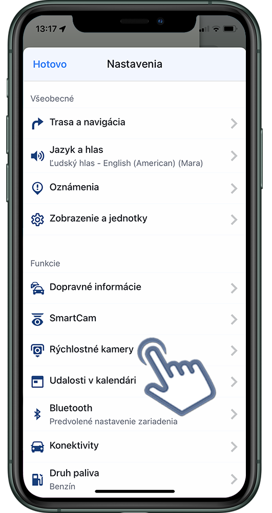 - Povoliť rýchlostné kamery – nevyhnutné pokiaľ chcete dostávať upozornenia na radary