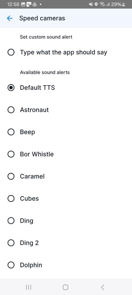 Finally, you can choose what sound type or spoken instruction should the app use to warn you with when passing a speed camera.