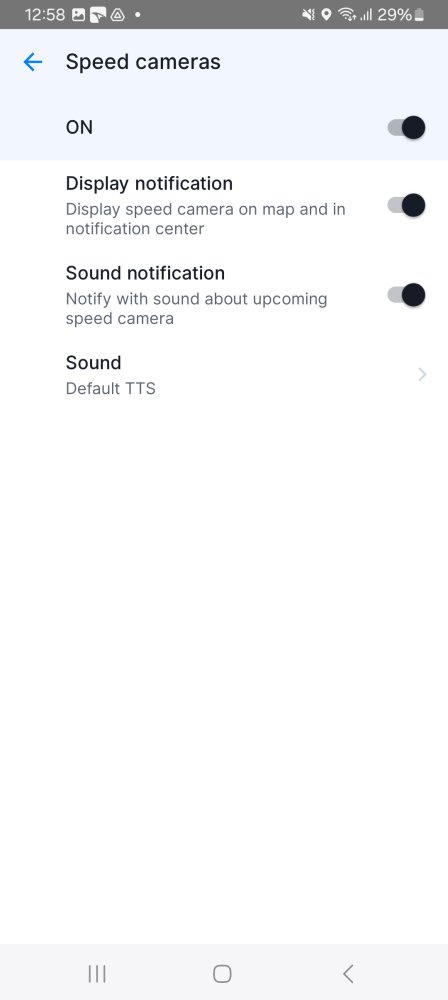 You can also enable/disable Sound notifications for when approaching or passing by speed cameras.