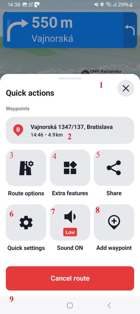 - Cancel route – Cancels the route you have currently set to navigate.