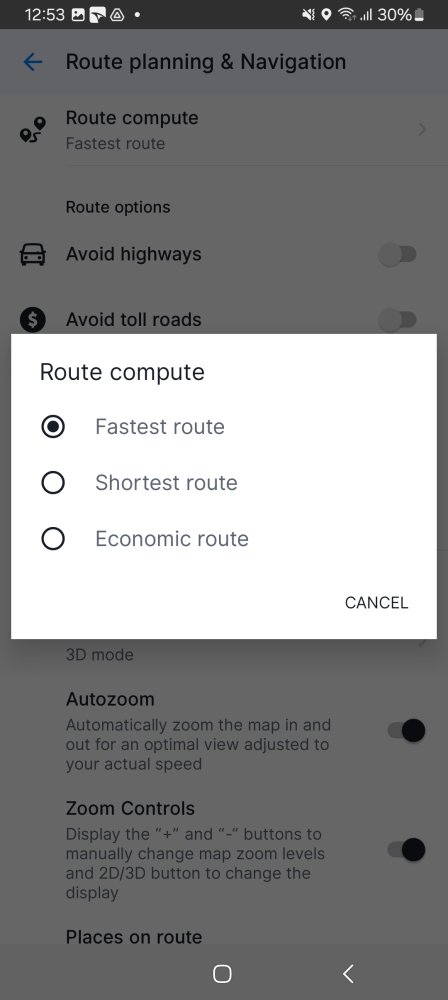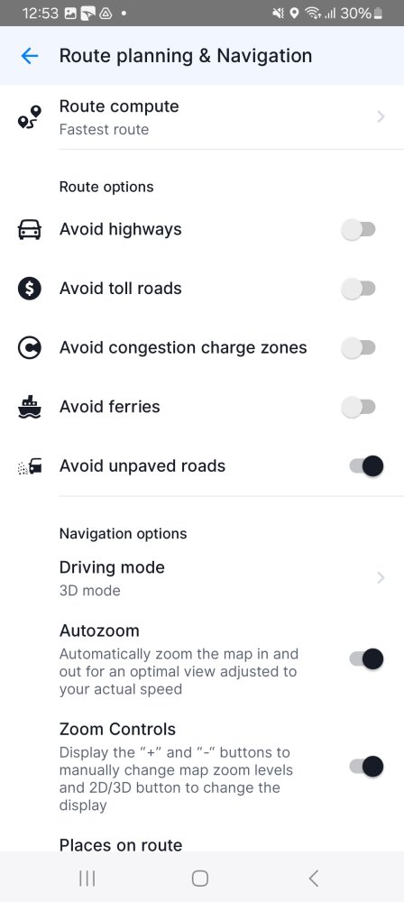 The Route planning & Navigation settings adjusts how the Route computing algorithm should calculate routes for you.