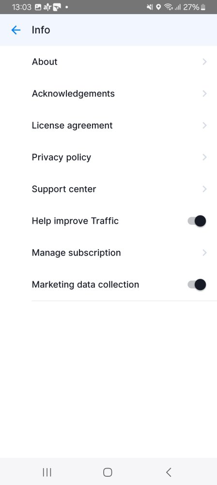 - Help improve traffic – Toggle to enable/disable the collection of anonymized data used to improve the traffic service.