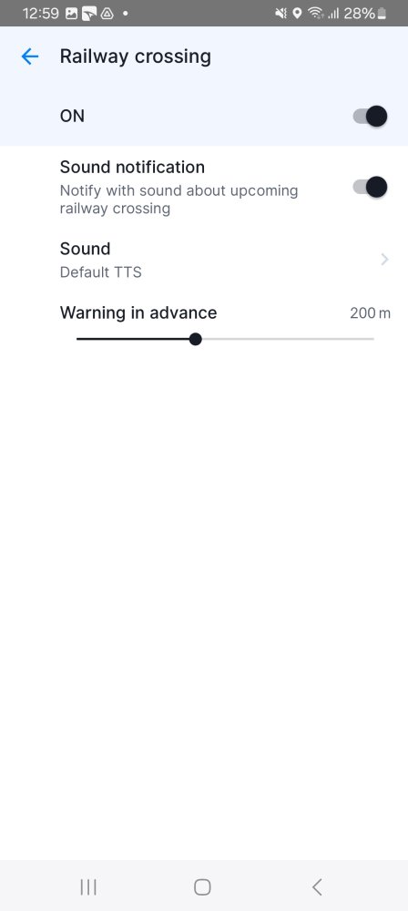 Finally, you can change the distance how much in advance the app should warn you about railway crossings.