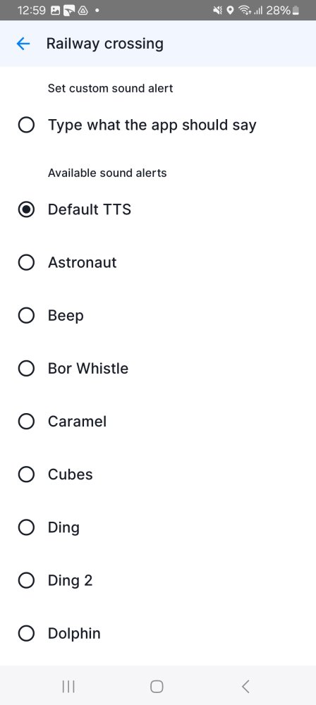 You can also choose what sound type or spoken instruction should the app use to warn you with when there is a railway crossing ahead.