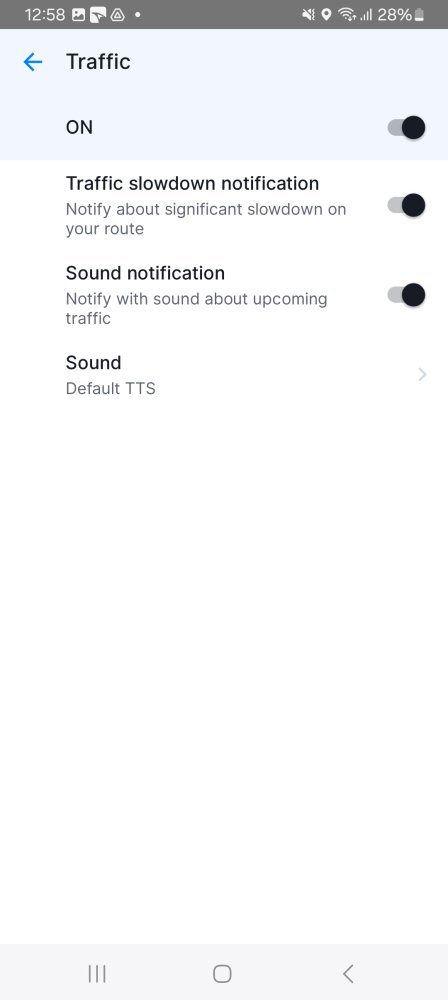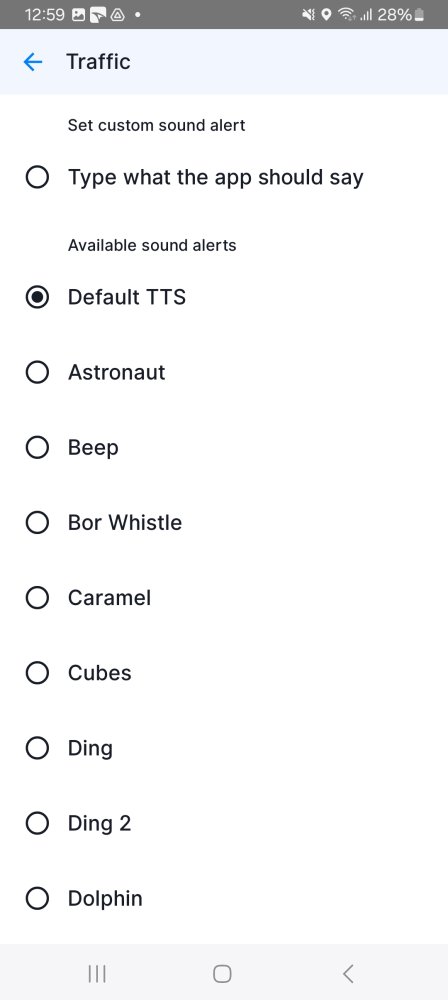 You can also choose what sound type or spoken instruction should the app use to warn you with when there is traffic ahead.