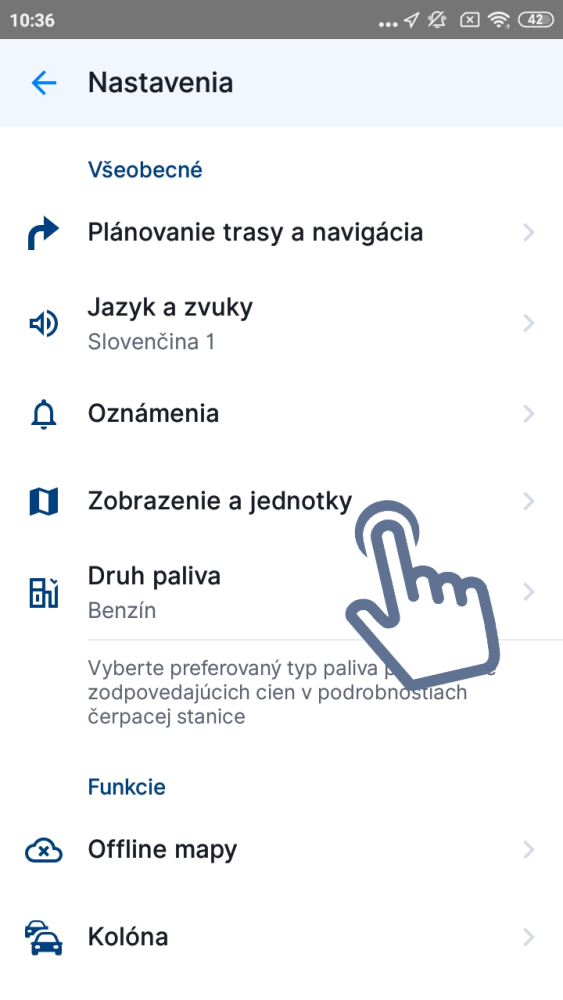 Cez Menu > Nastavenia > Zobrazenie a jednotky môžete prispôsobiť, podrobnosti zobrazované na mape, a nastaviť jednotky navigácie.