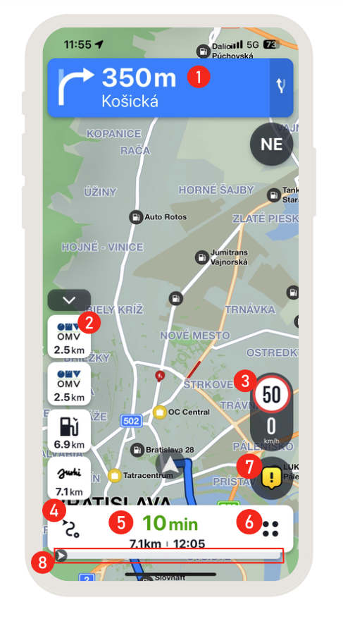 - Nadchádzajúca navigačná inštrukcia