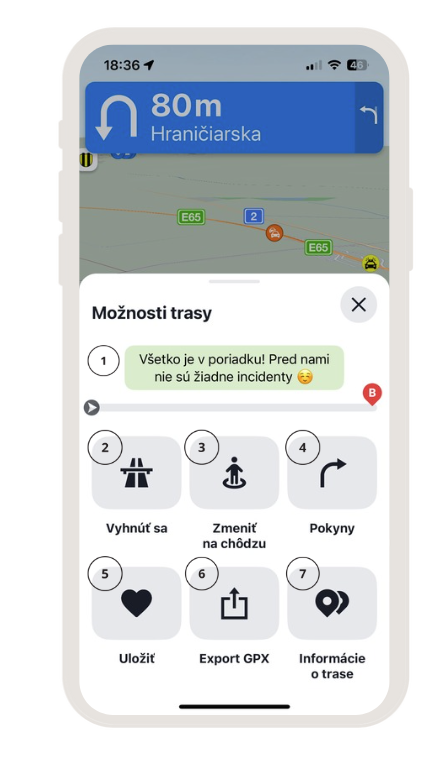 - Exportovať GPX, ak chcete svoju trasu zdieľať alebo uložiť v inom formáte.