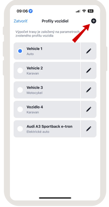 Nový profil vozidla si môžete vytvoriť klikutím na ikonu plus v pravom hornom rohu: