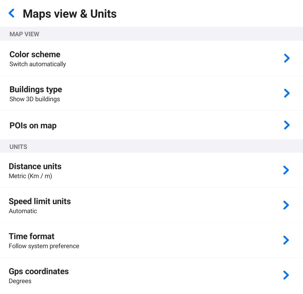 Buildings type: Enable or disable 3D buildings on the map (available usually in larger urban areas).