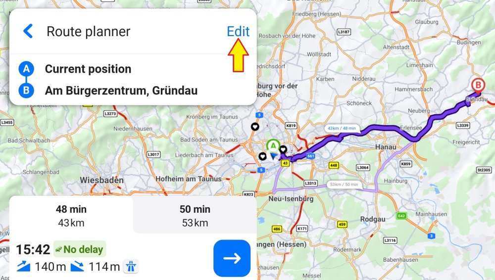 You can choose another vehicle profile or change route options. It’s possible to adjust parameters for each country the route passes through or avoid an entire country if another route is available.