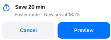 You can preview the new route, accept or decline it, or cancel the proposition upon the alert. After some time of inactivity, the alert is automatically dismissed.